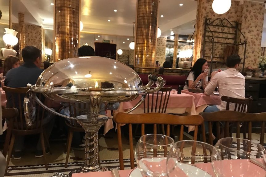 La Poule au Pot is a looker. It’s wonderful to walk in and witness the vintage wallpaper, the globe lighting, and the silver-plated serving chariot wheeling