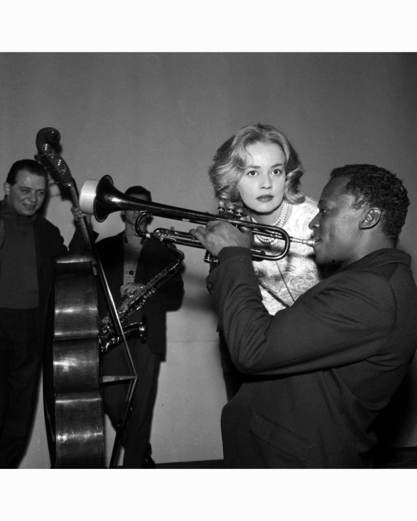 Jeanne Moreau et Miles Davis sur le tournage du film “Ascenseur pour l’échafaud” de Louis Malle, 1958