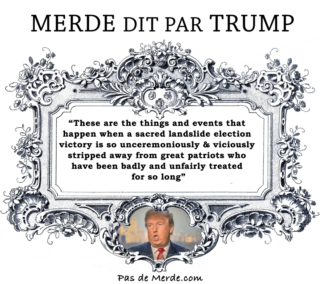 Trump Twitter was always good for a laugh. “Sacred” landslide? “Unceremoniously” stripped away? He probably read the words sacred and unceremoniously in another context where they were used correctly and figured these would make his morning dump-post sound presidential. Putz.