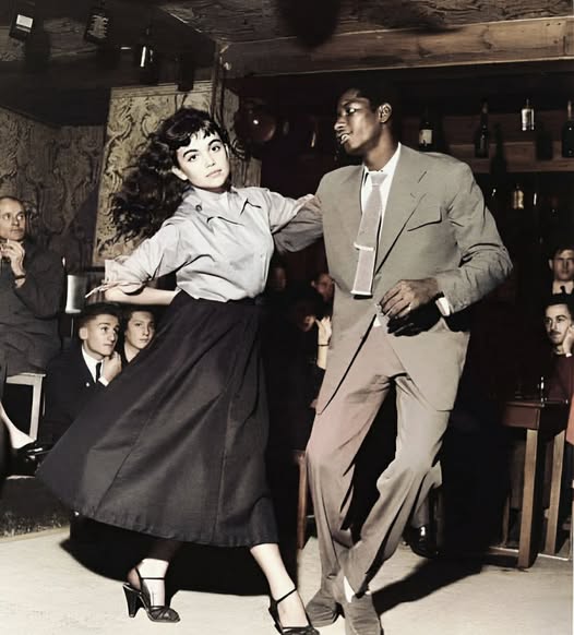 In 1951, photographer Robert Doisneau captured a vibrant moment at Club Saint-Germain in Paris, showcasing Claude Mocquery and James Campbell dancing. The image, set in the heart of the Saint-Germain-des-Prés district, epitomizes the post-war Parisian jazz scene, where intellectuals, artists, and musicians gathered in lively cafés and clubs. Doisneau, known for his humanist photography, skillfully framed this dance, capturing not just the motion but the spirit of the time—a blend of music, culture, and the joie de vivre that defined Paris in the 1950s. The photograph remains a timeless representation of the city’s creative energy during that era.